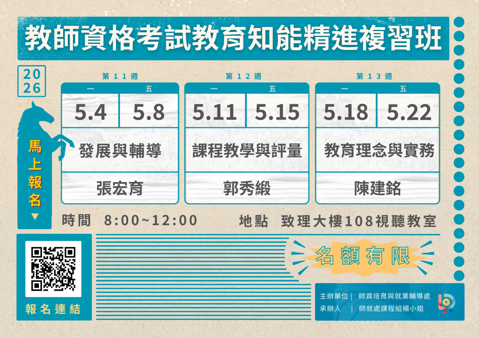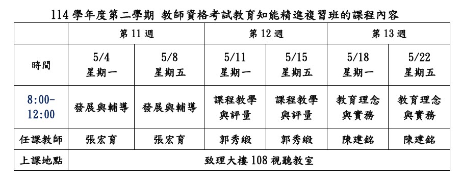 今年(115年)六月要參加教師資格考試的校內師資生(師培生與學程生),以未參加第一次加強班的為優先。